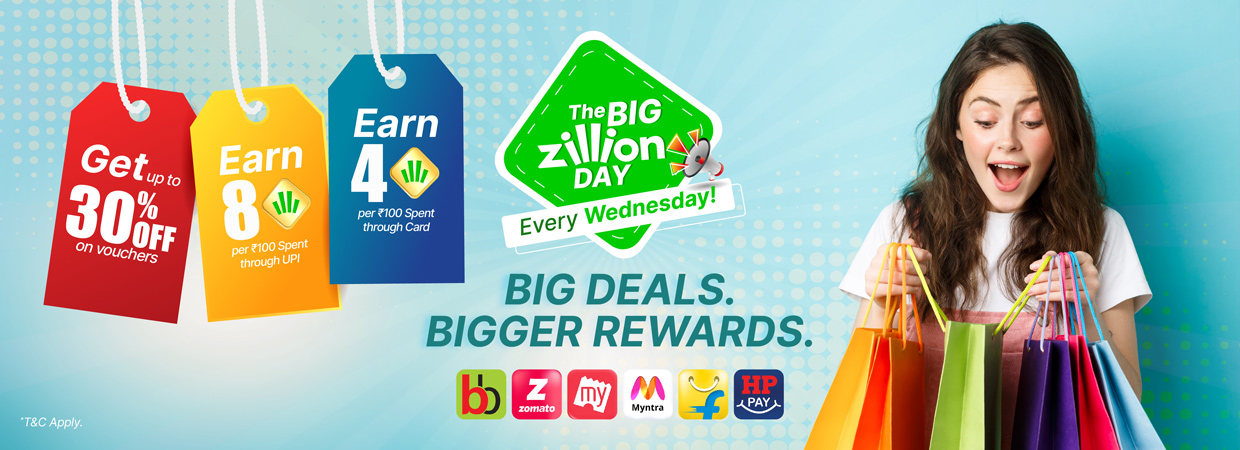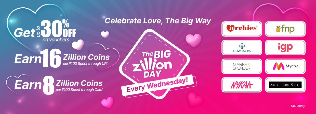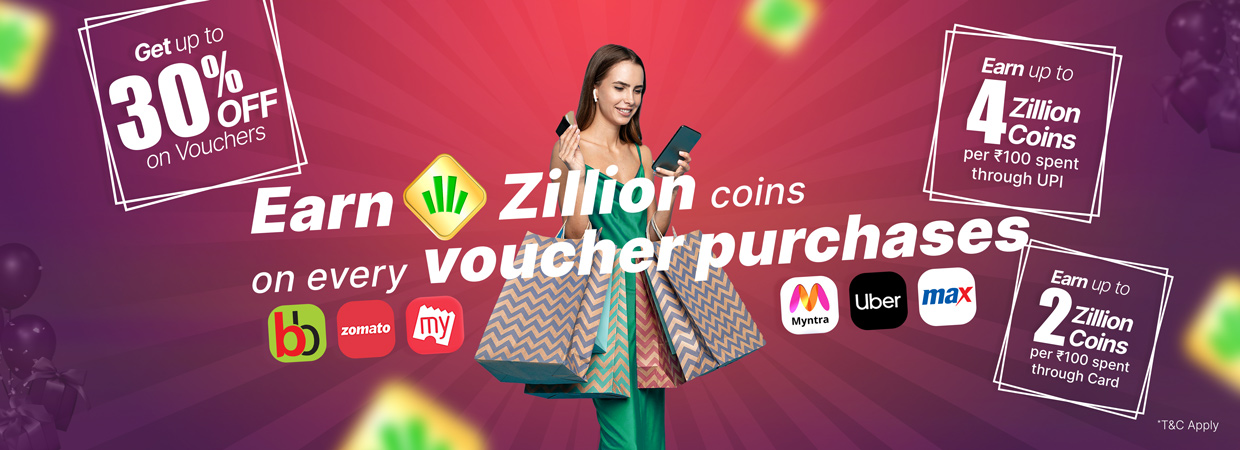 Zillion is a multi-brand loyalty program that enables you to earn and redeem coins at multiple categories and brands. With a wide range of offline and online partners, you earn Zillion coins on groceries, fuel, entertainment, travel, apparel and more.