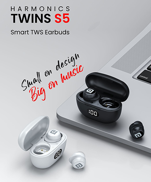 The twins to unlock the best of music, introducing the Portronics Harmonics Twins S5 earbuds. The lightweight TWS earphones weigh only 3.5 grams, with 8.5mm dynamic drivers and a micro case design. The Harmonics twins S5 have bluetooth version 5.2. After the first pairing, the earbuds connect automatically to the last paired device. They are compatible with iOS, android, smartphones, tablets, laptops and PCs. The wireless earphones support mono mode that allows you to listen on a single earbud. The click features allow you to control playbacks like music, calls and voice assistance over a few taps on the earbuds. The earbuds come with a 15-hour playtime with the case. The case has an LED Display that indicates battery percentage. You can get 90 minutes of playback on a 6-minute charge. Feel the bass and rhythm with 8.5 mm dynamic drivers that make your audio superior. Talk about catching lightning in a bottle, that's what we achieved with Portronics Harmonics Twins S5, small on design big on music.Specifications